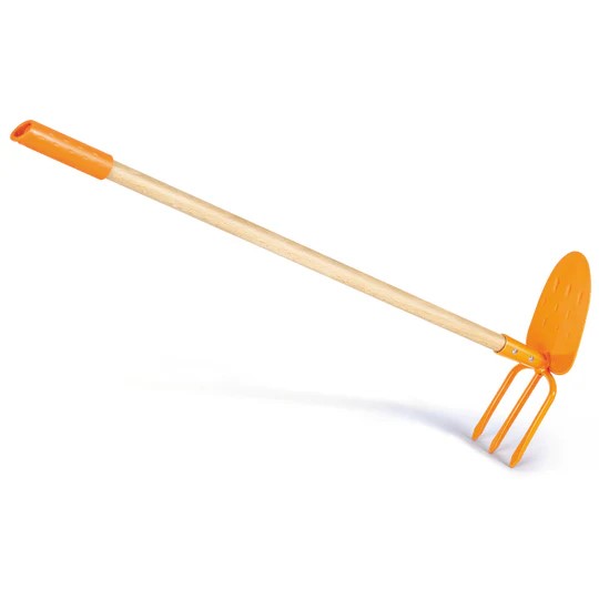 Esta azada de dos cabezas duplica la emoción de la jardinería: una hoja afilada para desmenuzar la tierra limpiamente y dientes puntiagudos para aflojarla fácilmente. Es una herramienta con infinitas posibilidades para los pequeños jardineros.